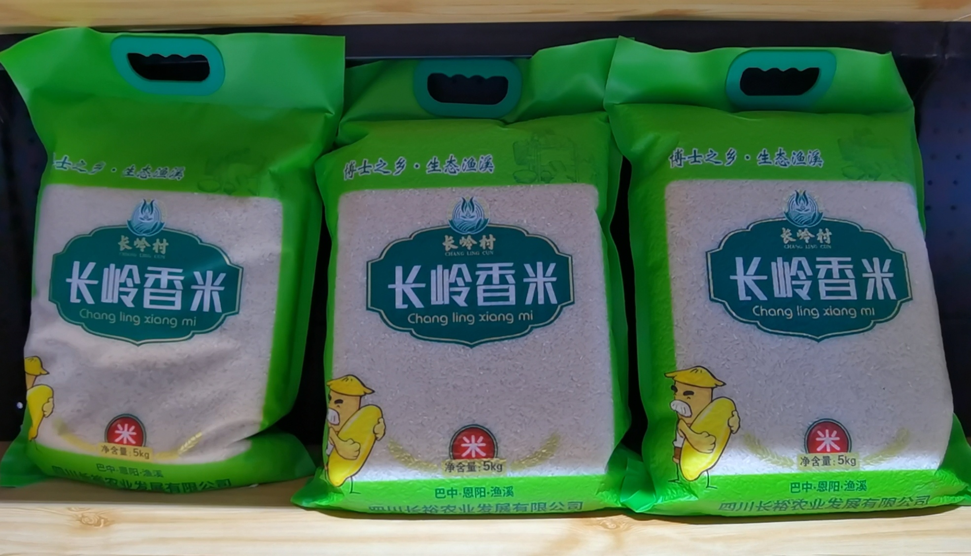 除了各种单位的食堂等大额订单的线下销售,长岭香米最近两年也开始尝试电商销售——“背包书记阿峰”的直播间、视频作品中,经常会有长岭香米的画面。